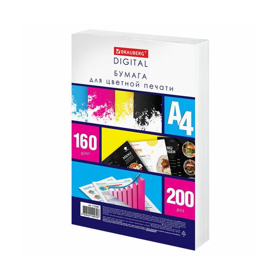 Оптимальные характеристики бумаги BRAUBERG DIGITAL гарантируют отличный результат при двусторонней печати и копировании. Бумага подходит для всех типов офисной техники, а также для различных видов творчества и создания презентационных материалов. Сырьем для BRAUBERG DIGITAL служит офсетная бумага производства AO "СЛПК" (г. Сыктывкар, Российская Федерация). В пачке 200 листов плотностью 160 г/м2 формата А4.