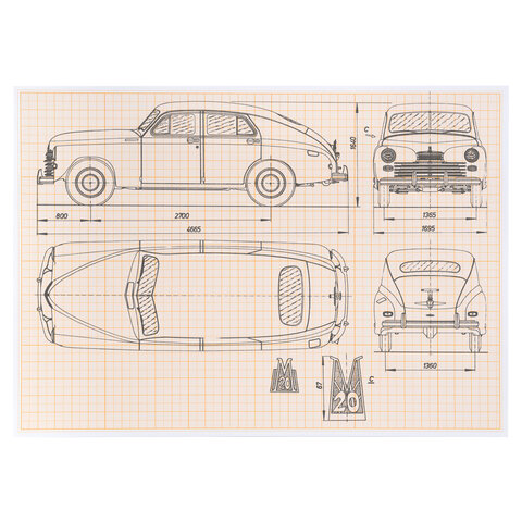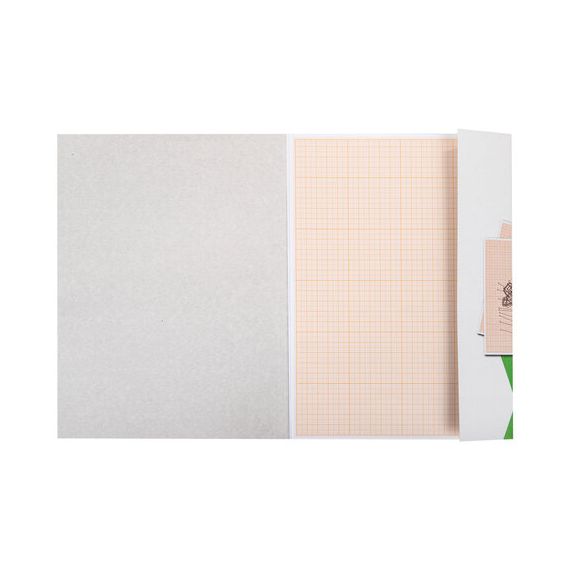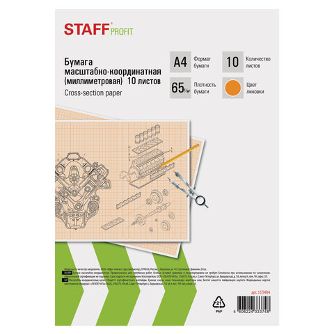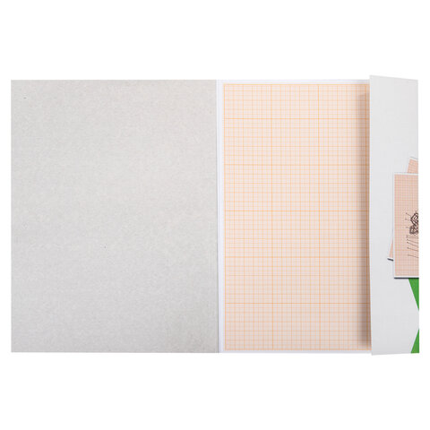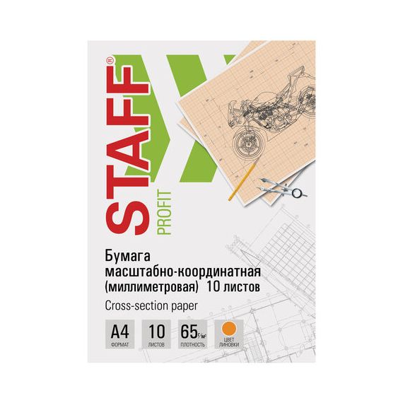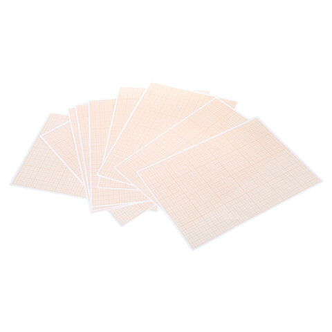 Бумага формата А4 (210х297 мм) и плотностью 65 г/м2. Упакована в картонную папку по 10 листов. Цвет линовки - оранжевый. Отличается четкими линиями и точной миллиметровой разметкой.
