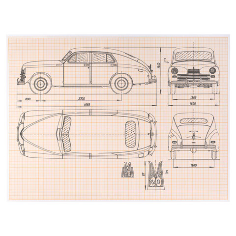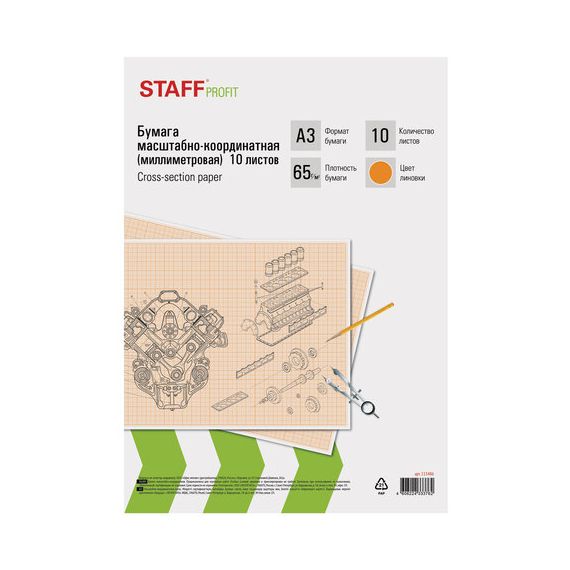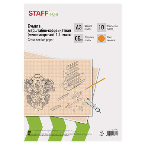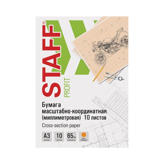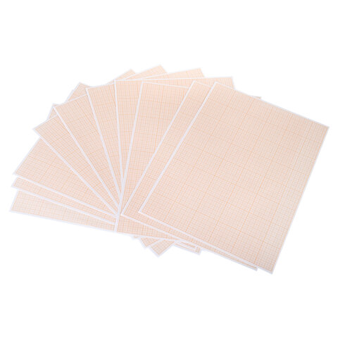 Бумага формата А3 (297х420 мм) и плотностью 65 г/м2. Упакована в картонную папку по 10 листов. Цвет линовки - оранжевый. Отличается четкими линиями и точной миллиметровой разметкой.