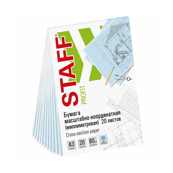 Бумага формата А3 (297х420 мм) и плотностью 80 г/м2. В наборе 20 листов. Цвет линовки - голубой. Отличается четкими линиями и точной миллиметровой разметкой.