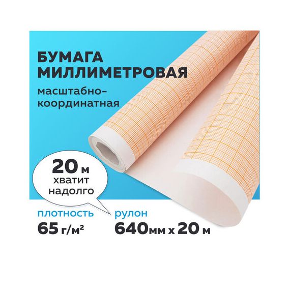 Бумага масштабно-координатная (миллиметровая), рулон 640 мм х 20 м, оранжевая, 65 г/м2, STAFF, 128992