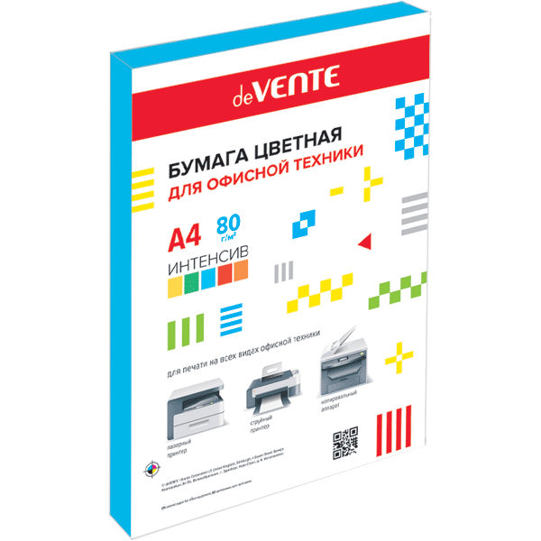 Бумага цветная для офисной техники "deVENTE" A4 100 л, 80 г/м², интенсив синий, картонная подложка, в термоусадочной пленке