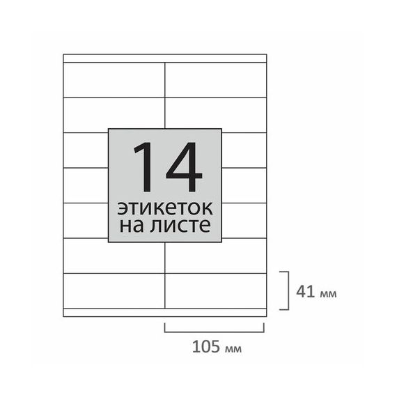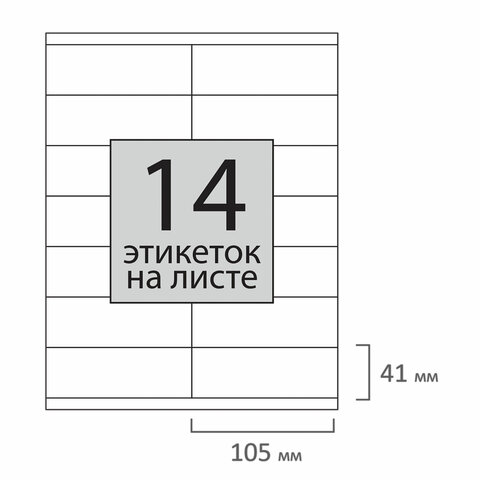 Выполнены из самоклеящейся матовой бумаги плотностью 65 г/м2. Надежно приклеиваются к поверхности любой формы и материала. Ширина этикетки составляет 41 мм, длина - 105 мм. К Комплект из 100 листов по 14 штук является выгодным приобретением для любой организации.