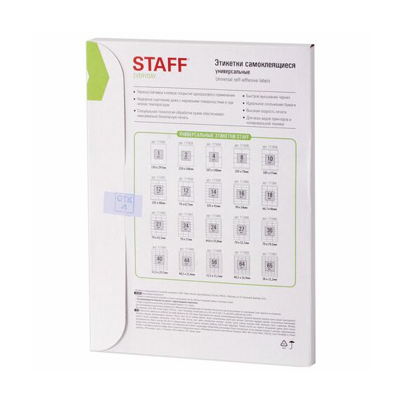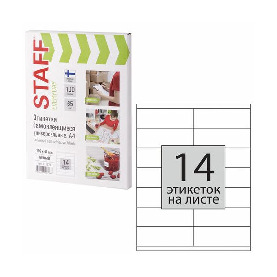 Этикетка самоклеящаяся 105х41 мм, 14 этикеток, 65 г/м2, 100 л., STAFF "EVERYDAY" (сырье Финляндия), 111839