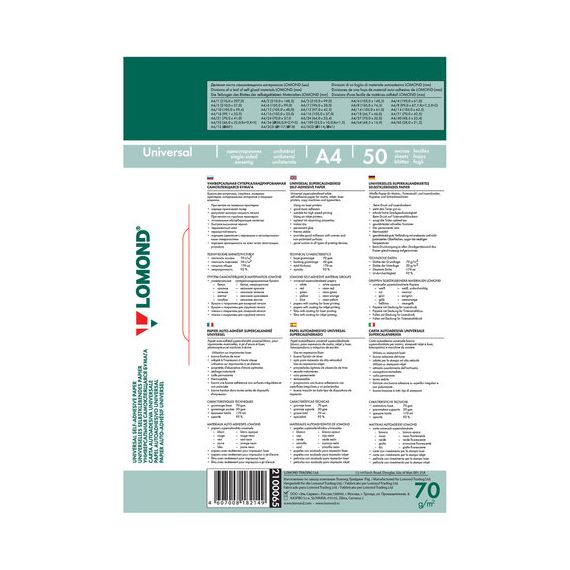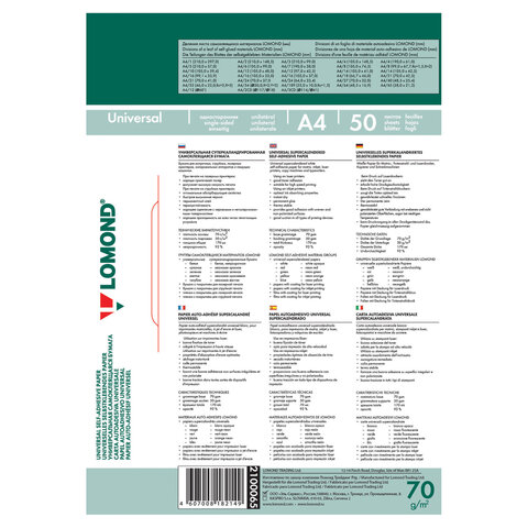 Этикетка самоклеящаяся 105х48 мм, 12 этикеток, белая, 70 г/м2, 50 листов, LOMOND, 2100065