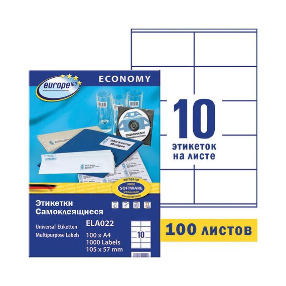 Этикетка самоклеящаяся 105х57 мм, 10 этикеток, белая, 70 г/м2, 100 л., Avery, Европа-100, ELA022