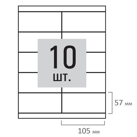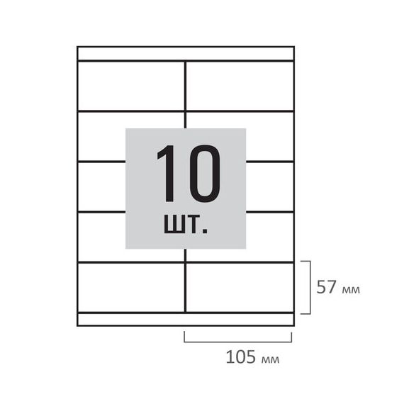 Изготовлены из матовой бумаги белого цвета плотностью 80 г/м2. Картонная упаковка содержит 100 листов формата А4, на каждом листе – десять этикеток размером 105х57 мм.