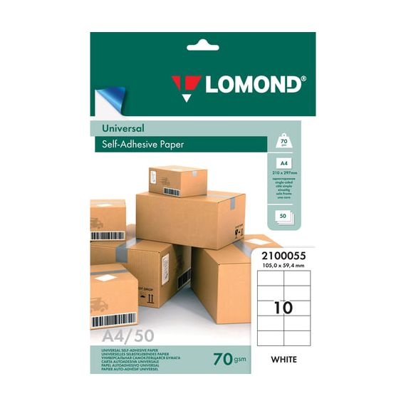 Этикетка самоклеящаяся 105х59,4 мм, 10 этикеток, белая, 70 г/м2, 50 листов, LOMOND, 2100055
