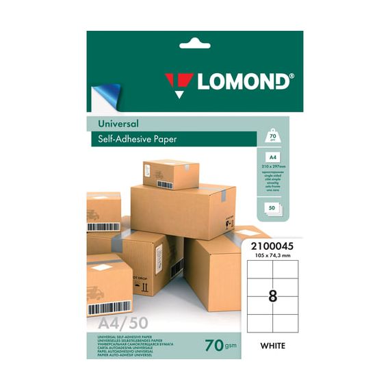Этикетка самоклеящаяся 105х74,3 мм, 8 этикеток, белая, 70 г/м2, 50 листов, LOMOND, 2100045