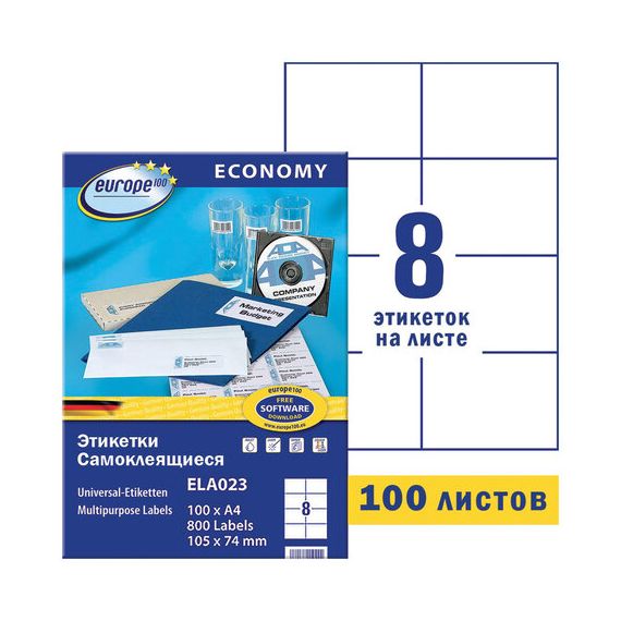 Этикетка самоклеящаяся 105х74 мм, 8 этикеток, белая, 70 г/м2, 100 л., Avery, Европа-100, ELA023