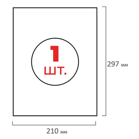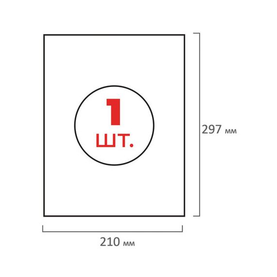 Изготовлены из матовой бумаги белого цвета плотностью 70 г/м2. Экономичная картонная упаковка содержит 50 листов формата А4, на каждом листе – 1 этикетка размером 210х297 мм.