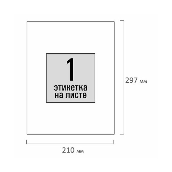 Изготовлены из самоклеящейся матовой бумаги плотностью 80 г/м2. Надежно приклеиваются к поверхности любой формы и материала. Картонная упаковка содержит 50 листов формата А4, на каждом листе – одна этикетка размером 210х297 мм.
