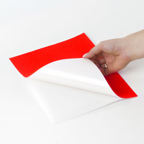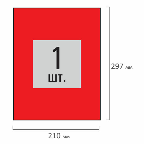 Изготовлены из самоклеящейся матовой бумаги плотностью 80 г/м2. Надежно приклеиваются к поверхности любой формы и материала. Картонная упаковка содержит 50 листов формата А4, на каждом листе – одна красная этикетка размером 210х297 мм.