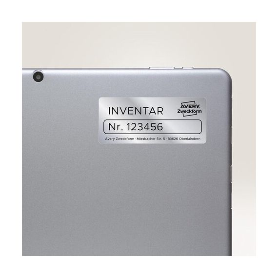 Изготовлены из полиэстера серебристого цвета плотностью 78 г/м2. Этикетки надежно приклеиваются на различные гладкие и неровные поверхности. Идеальное решение для архивов и дорогостоящих товаров, электронного оборудования, маркировки инвентаря, электронных компонентов, указания паспортных данных, инвентарной описи. Особо прочные этикетки устойчивы к воздействию загрязняющих веществ, влаги, перепадов температуры. Масло- и УФ-стойкие, моющиеся, грязеотталкивающие. Совместимы с черно-белыми лазерными принтерами. Упаковка содержит 20 листов формата А4, на каждом листе - одна этикетка размером 210x297 мм.
