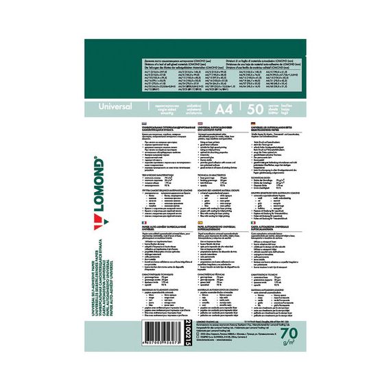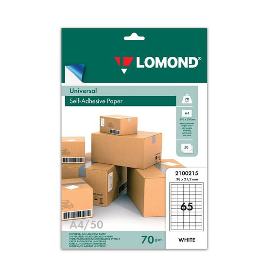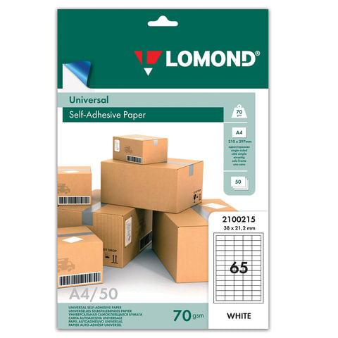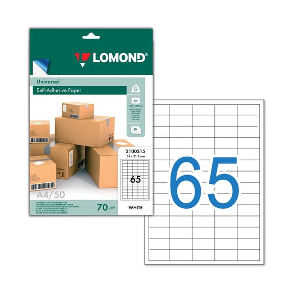 Этикетка самоклеящаяся 38х21,2 мм, 65 этикеток, белая, 70 г/м2, 50 листов, LOMOND, 2100215