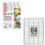 Этикетка самоклеящаяся 48,5х16,9 мм, 64 этикетки, белая, 80 г/м2, 50 листов, STAFF BASIC, 115663