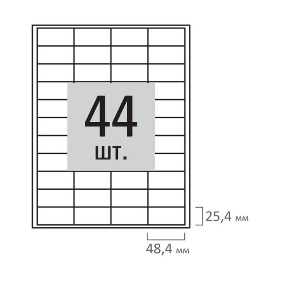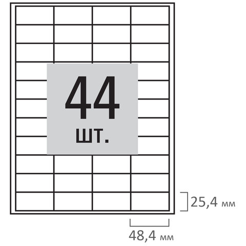 Этикетка самоклеящаяся 48,5х25,4 мм, 44 этикетки, белая, 80 г/м2, 100 листов, STAFF, 115185
