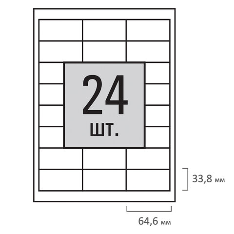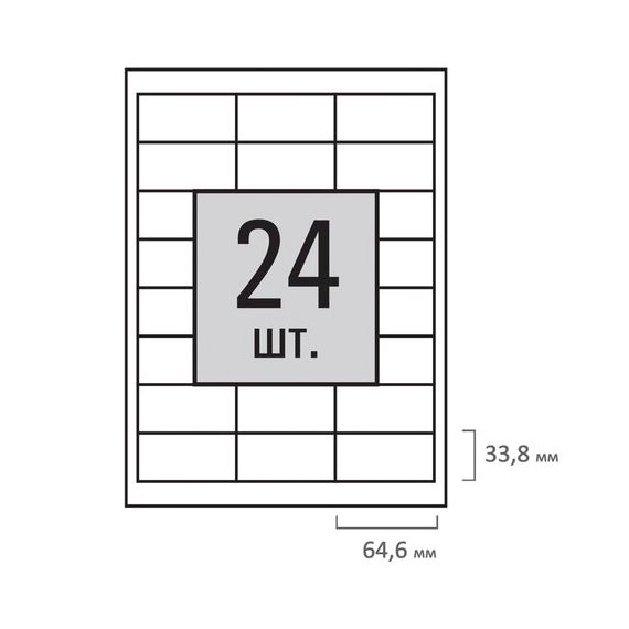 Выполнены из самоклеящейся матовой бумаги плотностью 65 г/м2. Надежно приклеиваются к поверхности любой формы и материала. Ширина этикетки составляет 33,8 мм, длина - 64,6 мм. Комплект из 100 листов по 24 штуки является выгодным приобретением для любой организации.