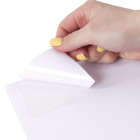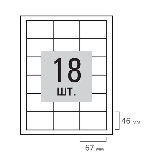 Изготовлены из матовой бумаги белого цвета плотностью 80 г/м2. Картонная упаковка содержит 100 листов формата А4, на каждом листе – восемнадцать этикеток размером 67х46 мм.