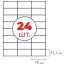 Изготовлены из матовой бумаги белого цвета плотностью 70 г/м2. Картонная упаковка содержит 50 листов формата А4, на каждом листе – 24 этикетки размером 70х37,1 мм.