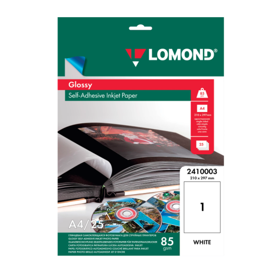 Фотобумага САМОКЛЕЯЩАЯСЯ глянцевая, А4, 85 г/м2, 25 листов, LOMOND