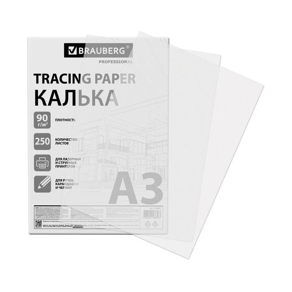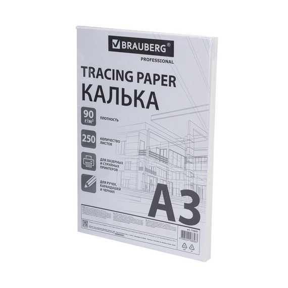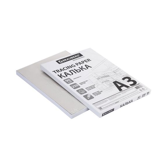 Калька А3 ВЫСОКОЙ ПРОЗРАЧНОСТИ, ПЛОТНАЯ, для печати и творчества, 90 г/м2, 250 листов, BRAUBERG, 116641