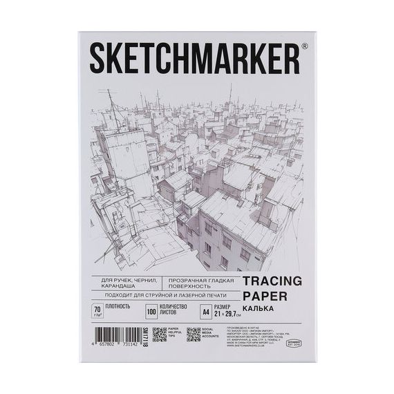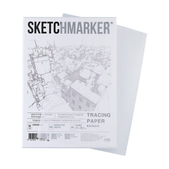 Калька А4 для печати и творчества, 70 г/м2, 100 листов, SKETCHMARKER, SM17118