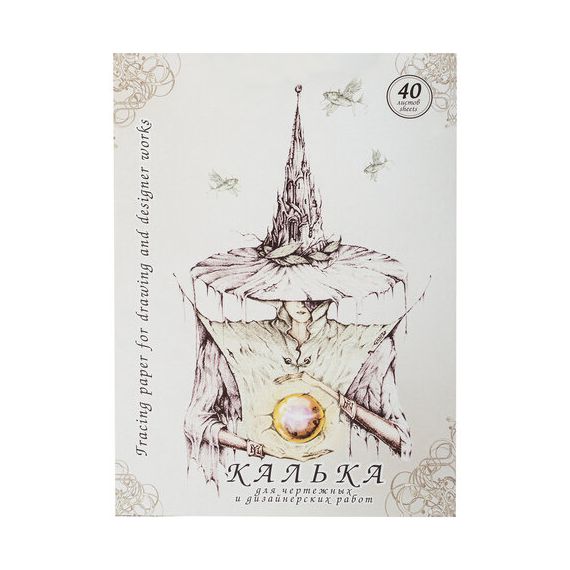 Калька для чертежных и дизайнерских работ, А4, 210х297 мм, 40 г/м2, в папке, 40 листов, КДР/А4