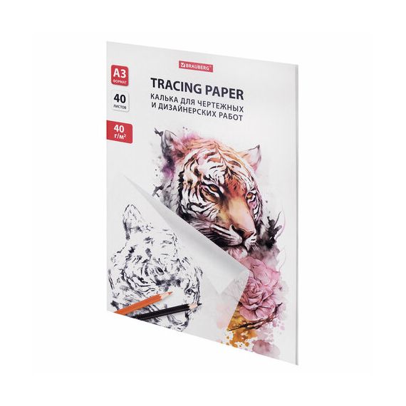 Калька для чертежных и дизайнерских работ папка, А3, 297х420 мм, 40 г/м2, 40 листов, BRAUBERG, 116374