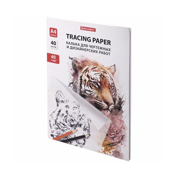 Калька для чертежных и дизайнерских работ папка, А4, 210х297 мм, 40 г/м2, 40 листов, BRAUBERG, 116375