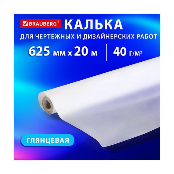Калька для чертежных и дизайнерских работ, рулон 625 мм х 20 м, 40 г/м2, BRAUBERG, 116372