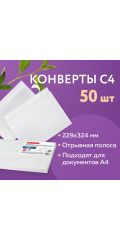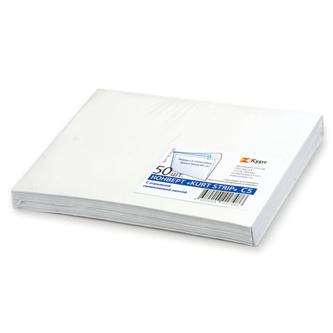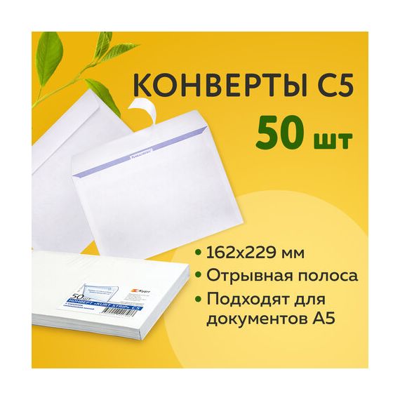 Конверты С5 (162х229 мм), отрывная лента, 80 г/м2, КОМПЛЕКТ 50 шт.