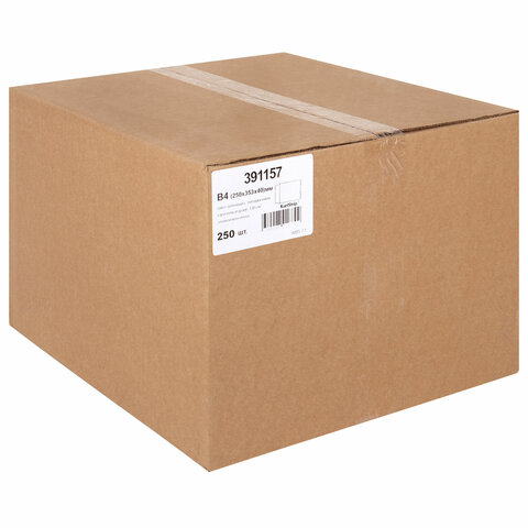 Конверт-пакет В4 объемный (250х353х40 мм), до 300 листов, крафт-бумага, отрывная полоса, 391157