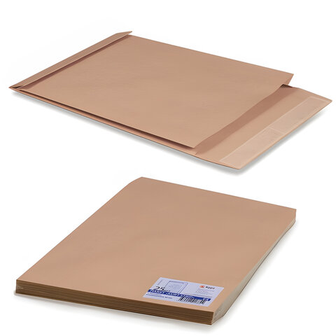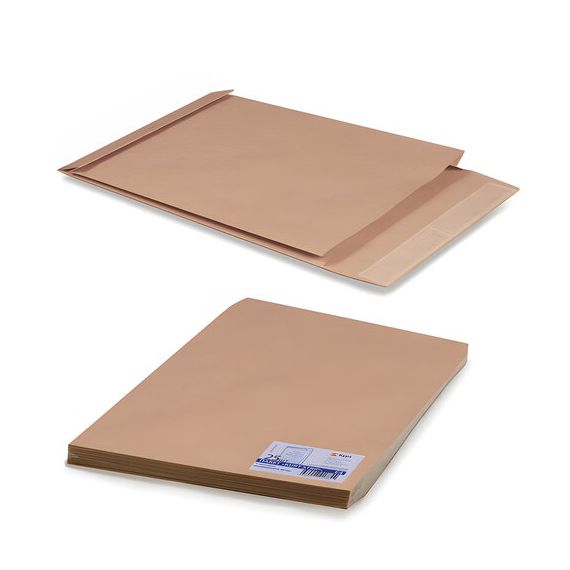 Конверт-пакеты Е4+ объемный (300х400х40 мм) до 300 листов, крафт-бумага, отрывная полоса, КОМПЛЕКТ 25 шт., 302127.25