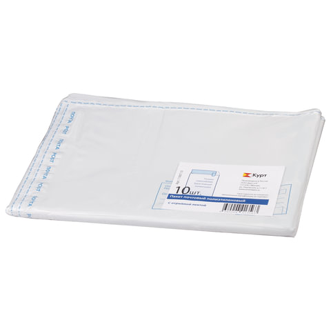 Конверт-пакеты ПОЛИЭТИЛЕН B3 (360х500 мм) до 500 л., отрывная лента, "Куда-Кому", КОМПЛЕКТ 10 шт., 11007.10