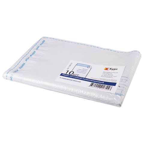 Конверт-пакеты ПОЛИЭТИЛЕН E4 (280х380 мм) до 500 л., отрывная лента, "Куда-Кому", КОМПЛЕКТ 10 шт., 11005.10