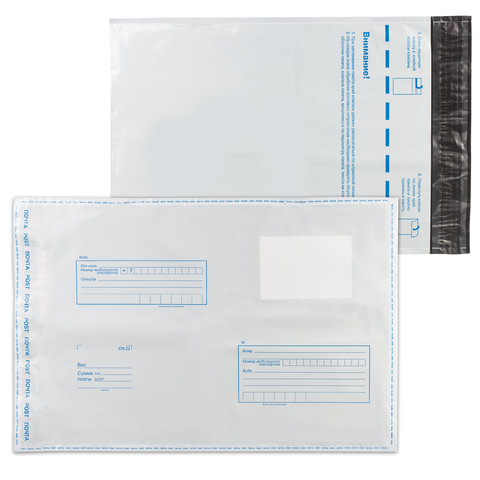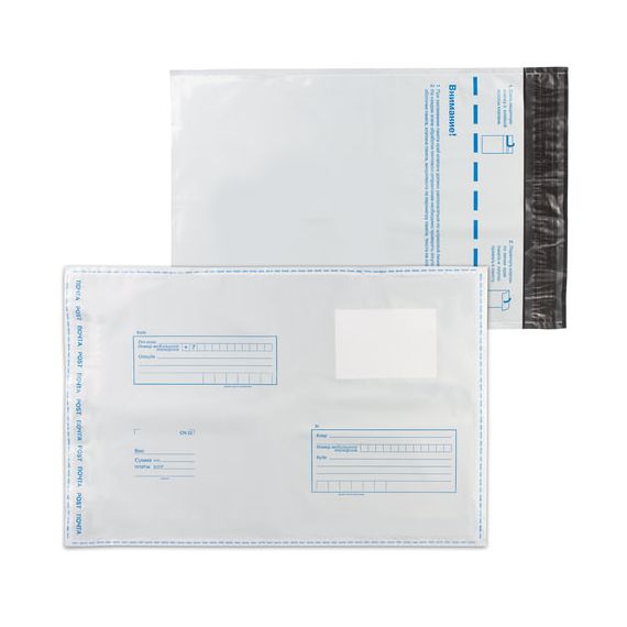 На передней стороне конверта имеются адресные указатели: "От кого", "Откуда", "Кому", "Куда". Отрывная полоса типа STRIP обеспечивает легкое запечатывание пакета.