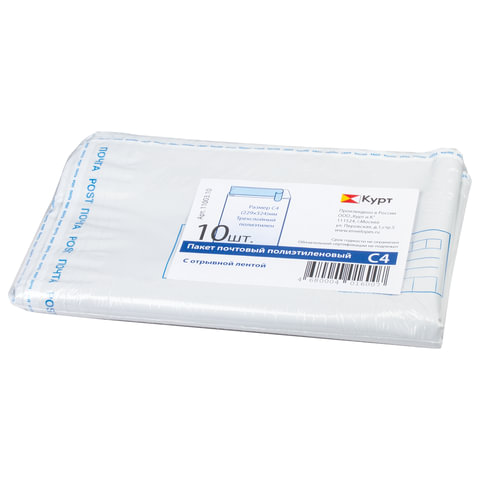 Конверт-пакеты ПОЛИЭТИЛЕН С4 (229х324 мм) до 160 л., отрывная лента, "Куда-Кому", КОМПЛЕКТ 10 шт., 11003.10
