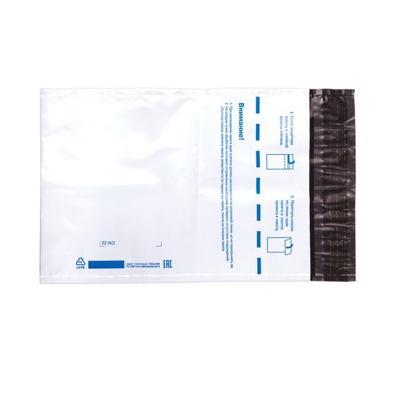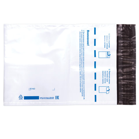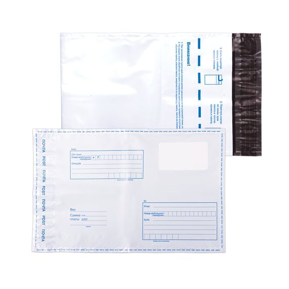 На передней стороне конверта имеются адресные указатели: "От кого", "Откуда", "Кому", "Куда". Отрывная полоса типа STRIP обеспечивает легкое запечатывание пакета.