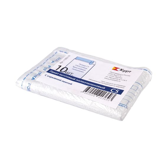 Конверт-пакеты ПОЛИЭТИЛЕН С5 (162х229 мм) до 150 л., отрывная лента, "Куда-Кому", КОМПЛЕКТ 10 шт., 11002.10