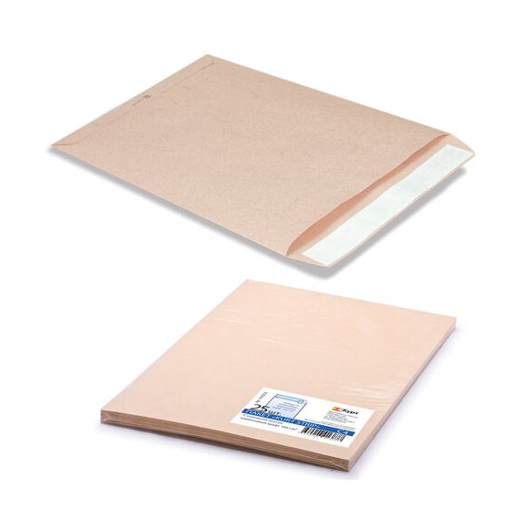 Конверт-пакеты С4 плоские (229х324 мм), до 90 листов, крафт-бумага, отрывная полоса, КОМПЛЕКТ 25 шт., 161150.25