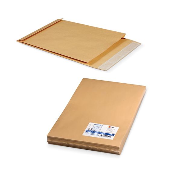 Конверт-пакеты В4 объемный (250х353х40 мм), до 300 листов, крафт-бумага, отрывная полоса, КОМПЛЕКТ 25 шт., 391157.25