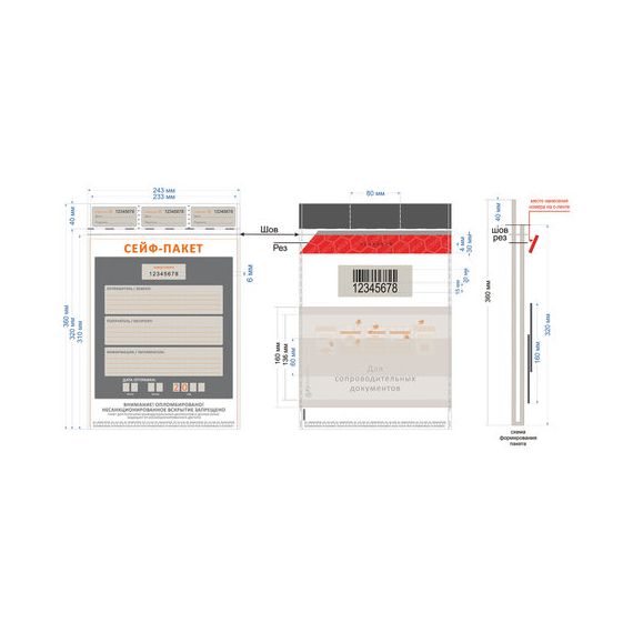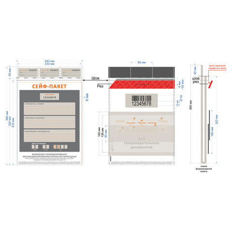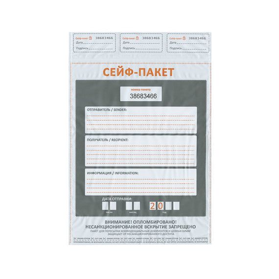 Сейф-пакеты полиэтиленовые (243х320+40 мм), до 100 листов формата А4, КОМПЛЕКТ 100 шт., индивидуальный номер