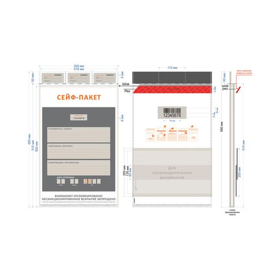 Сейф-пакеты полиэтиленовые, БОЛЬШОЙ ФОРМАТ (328х510+50 мм), КОМПЛЕКТ 50 шт., индивидуальный номер