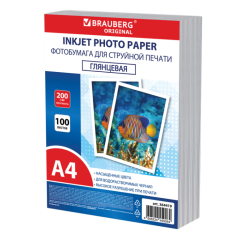 Глянцевая односторонняя фотобумага BRAUBERG подходит для всех типов струйных принтеров. Незаменима для печати ярких фотореалистичных изображений. Передает яркие, насыщенные цвета со множеством оттенков. Имеет формат А4 и плотность 200 г/м2, что исключает просвечивание изображения. Гладкая поверхность обеспечивает превосходное качество, а особый состав – идеальную цветопередачу. Печать возможна только водорастворимыми чернилами. Поставляется по 100 листов в плотном пузырчатом пакете, защищающем бумагу от механических повреждений при доставке.