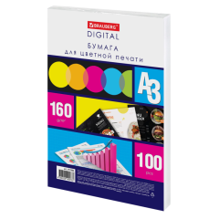 BRAUBERG DIGITAL - многоцелевая бумага рекомендуется для цветной печати в офисе или дома, а также для использования в копировальных центрах. Плотность бумаги для повседневной печати составляет 80 г/м2. Если существует необходимость печати на более плотной бумаге, рекомендуем выбирать бумагу BRAUBERG DIGITAL. Напоминаем, что при использовании бумаги повышенной плотности следует убедиться, что принтер рассчитан на выбранную вами плотность листа и корректно указать в настройках принтера тип и размер бумаги. Это позволит добиться великолепных результатов печати на бумаге BRAUBERG DIGITAL. Оптимальные характеристики бумаги BRAUBERG DIGITAL гарантируют отличный результат при двусторонней печати и копировании. Подходит для всех типов офисной техники, а также для различных видов творчества и создания презентационных материалов. Сырьем для BRAUBERG DIGITAL является офсетная бумага производства AO "СЛПК" (г. Сыктывкар, Российская Федерация). В пачке 100 листов плотностью 160 г/м2 А3 формата. Напоминаем, что при использовании бумаги повышенной плотности следует убедиться, что принтер поддерживает выбранную вами плотность листа, а в настройках корректно указан тип и размер бумаги. Перед загрузкой в оргтехнику пролистывайте бумагу с 4 сторон.