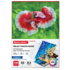 Глянцевая односторонняя фотобумага BRAUBERG подходит для всех типов струйных принтеров. Незаменима для печати ярких фотореалистичных изображений. Передает яркие, насыщенные цвета со множеством оттенков. Имеет формат А3 и плотность 160 г/м2, что исключает просвечивание изображения. Гладкая поверхность обеспечивает превосходное качество, а особый состав - идеальную цветопередачу. Печать возможна только водорастворимыми чернилами. Поставляется по 50 листов в картонной упаковке.