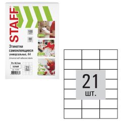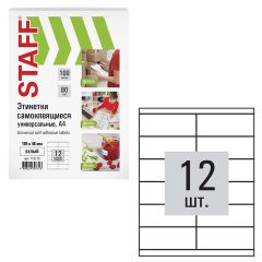 Самоклеящиеся этикетки позволят быстро и качественно подготовить адресные наклейки, регистрационные номера, аннотации при помощи лазерного или струйного принтера. Изготовлены из матовой бумаги белого цвета плотностью 70 г/м2. Экономичная картонная упаковка содержит 100 листов формата А4, на...