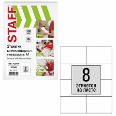 Самоклеящиеся этикетки позволят быстро и качественно подготовить адресные наклейки, регистрационные номера, аннотации при помощи лазерного или струйного принтера. Изготовлены из матовой бумаги белого цвета плотностью 70 г/м2. Картонная упаковка содержит 50 листов формата А4, на каждом листе – 8...