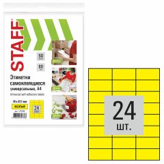 Изготовлены из матовой бумаги желтого цвета плотностью 80 г/м2. Картонная упаковка содержит 50 листов формата А4, на каждом листе – двадцать четыре этикетки размером 70х37,1 мм. Для организации печати этикеток можно также использовать наш шаблон. Чтобы увидеть разлиновку шаблона, необходимо в...